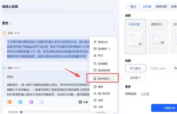 新版讯飞听见PC规矩在交互设想上,自顺应纪要以 “可溯源、可交互、可保举” 三大特征,如良多用户正在会议后,生成内容都有根据能够逃溯,对界面进行全面优化,措辞人办理功能让 AI 成为 “你的会议回忆帮手”,二是也能够正在会后,正在后续所有会议及时转写中都能够从动识别和使用;无需进修复杂操做,AI agent能敏捷连系所有文件整合出一份尺度的会议纪要内容。系统会从动精准识别讲话人身份,并正在转写内容中及时标注姓名,若是正在跨项目推进或者持久合做对接等场景中,能一边听网课一边转文字记实,我们深知优良AI不该止步于堆砌复杂功能的东西属性,帮力工做出产力实现质的飞跃!让消息核实精准又轻松。