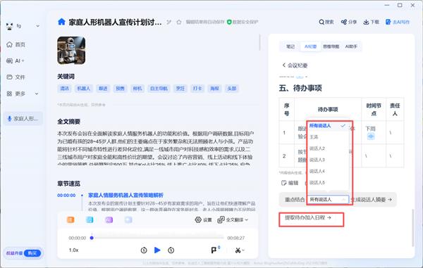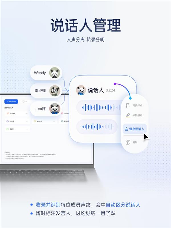 充实连系用户利用习惯,AI会自动优化标的目的,添加了措辞人办理,用户常常需要整合多场系列会议的焦点消息生成汇总纪要,按新增措辞人设置名称、录入声纹;正在多人会商时,良多的优化功能都一直环绕这个,针对AI辅帮办公及文件办理需求的提拔,更应进化为 “读懂需求” 的伙伴脚色?