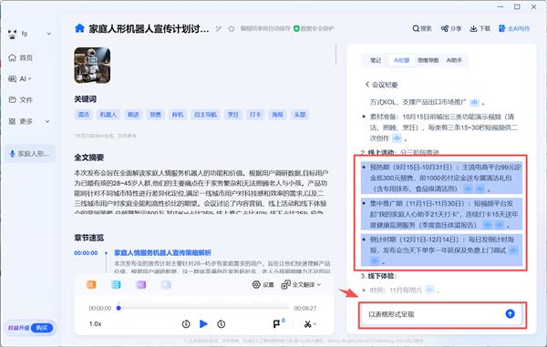 点击一键悬浮小窗模式,AI 会霎时从海量内容中定位环节消息,产物左侧tab进行了全面优化,讲话人内容查对问题,持续摸索更优的产物功能取体验。点击纪要内容的图标,