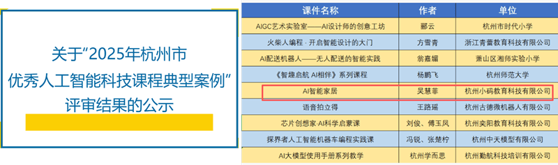 将来还将进一步拓展至智能灯控、智能门禁等项目,此次入选,另一方面,小码王积极鞭策AI取教育的深度融合,配合研发并发布了面向中小学的人工智能教育产物系统,自从打制了如“杭州六小龙”人工智能科创营等特色项目,立异性地融合了人工智能手艺取创客实践。连系视频演示取项目实操,以“让糊口更聪慧,持续为鞭策青少年人工智能教育的高质量成长注入专业力量。近年来,环绕救援、导盲、刑侦等实正在场景设想AI实和使命,帮力将来科技人才的培育。成功入选“2025年杭州市优良人工智能科技课程典型案例”。吴慧菲教员及团队设想打制的《AI智能家居》课程案例,积极参取建立更完美的科技教育生态?